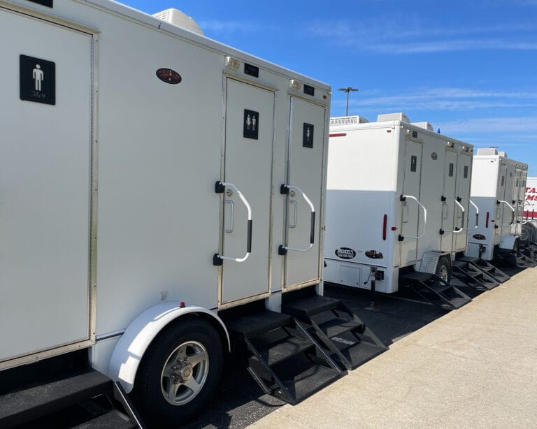 Give your crew a job-site upgrade with climate-controlled construction restroom trailers featuring flushing toilets, sinks, bright lighting, and the capacity to keep your site running comfortably and professionally.